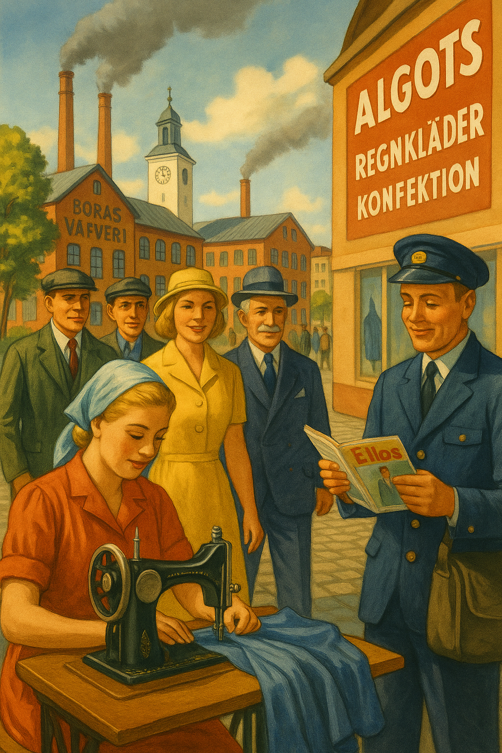 I början av seklet snurrade symaskinerna i ett konstant surr. Fabrikerna växte upp längs Viskan och företagsnamn som Algots, Oscar Jacobson, Borås Wäfveri, senare även Ellos och Haléns, vävde ihop staden med hela Sveriges garderob. Här syddes arbetskläder, regnjackor, kavajer och konfektion för både kung och knegare. Det doftade textil, svett och framtidstro.
