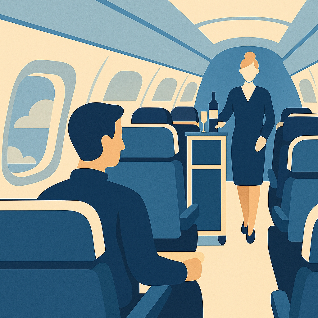 Det finns två typer av människor ombord – de som väljer fönster och de som väljer gång. Men efter otaliga flygningar börjar jag tro att det finns en tredje kategori: vi som väljer sida. För även om ingen studie ännu bevisat det, är jag helt övertygad om att man får snabbare service om man sitter på den vänstra sidan i flygriktningen. Kalla det vana, intuition eller en touch av flygerfarenhet – men något säger mig att glaset hinner fram fortare på 2A än på 2K.